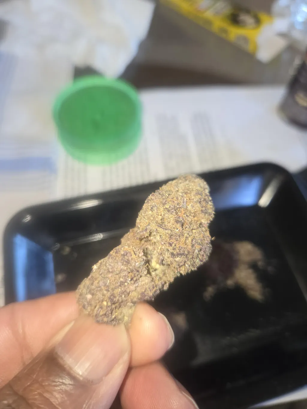 Arrived earlier thanexpected, buds were nice and fat, well manicured. Great high, indica on the back end.