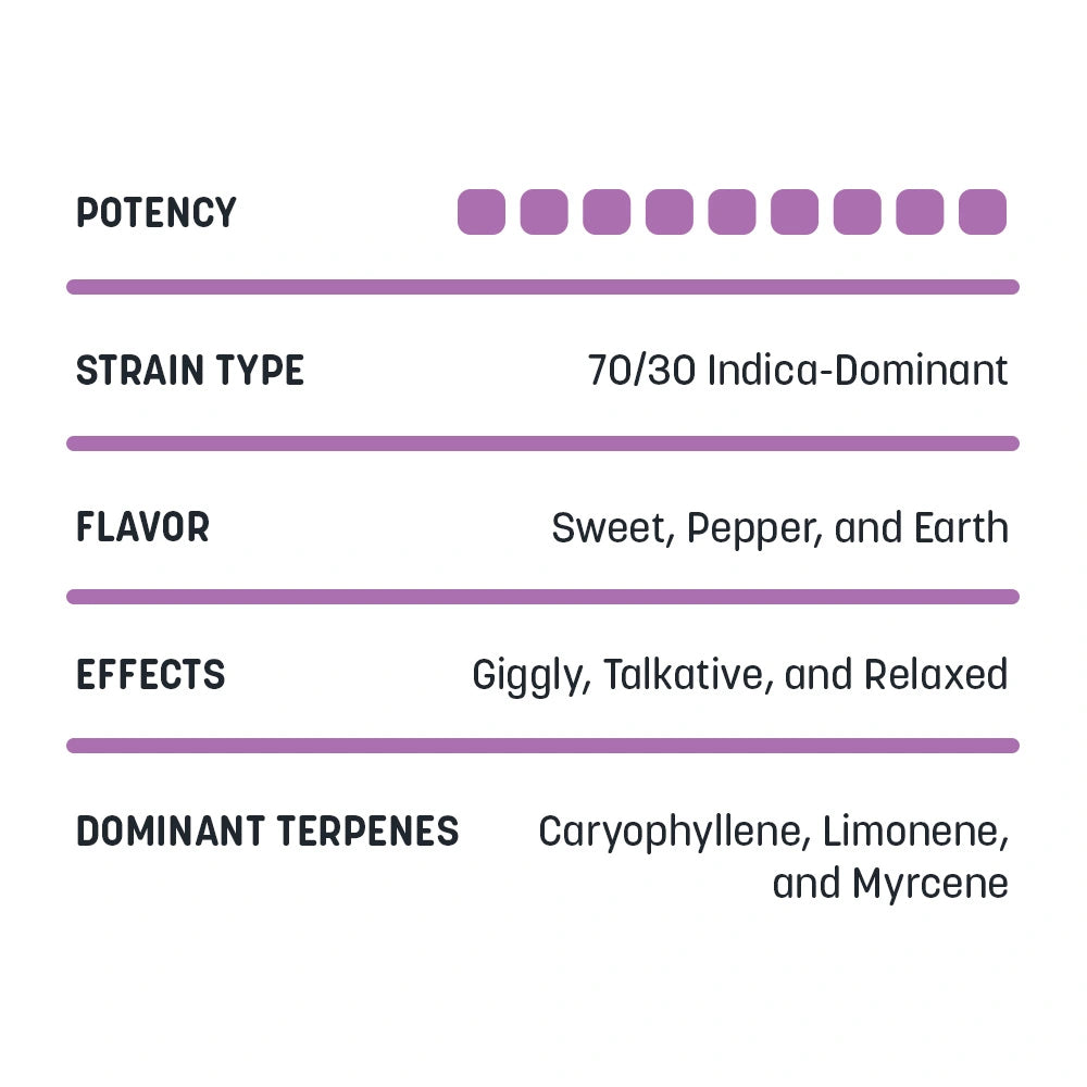 Jealousy is a flavorful cross between Gelato #41 and Sherbert, often described as a well-balanced hybrid with a smooth, full-bodied vibe. Users report an immediate happy lift that can bring a boost of motivation and focus for getting things done. Even with its relaxing edge, many say it stays fairly functional and doesn’t lean into heavy indica-style sedation. With flavors commonly associated with sweet, herbal candy and citrusy sour-fruit notes on the exhale, Jealousy is a great pick for daytime sessions when you want to stay upbeat and productive.