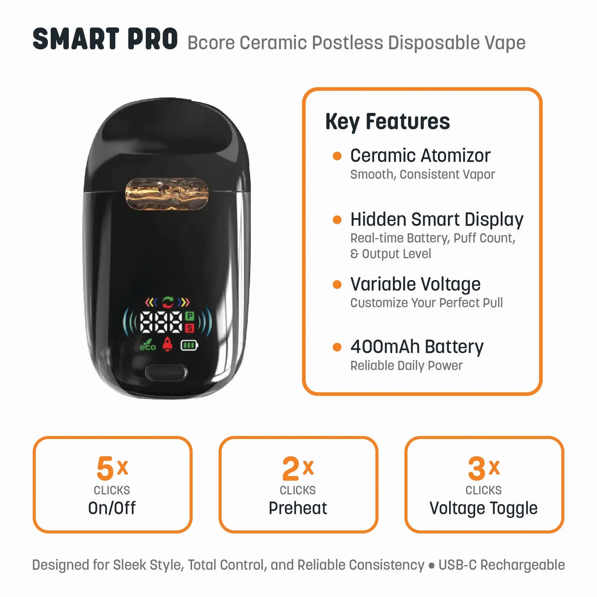 Because Liquid Diamond oil is thicker and more complex than standard distillate, not just any hardware can do it justice. That's why we paired it with our best — the Budtank Smart Pro Bcore Ceramic Postless Disposable. Its ceramic atomizer is built to handle thick concentrate oil without clogging, burning, or losing flavor mid-session, delivering smooth, consistent vapor from first hit to last.
